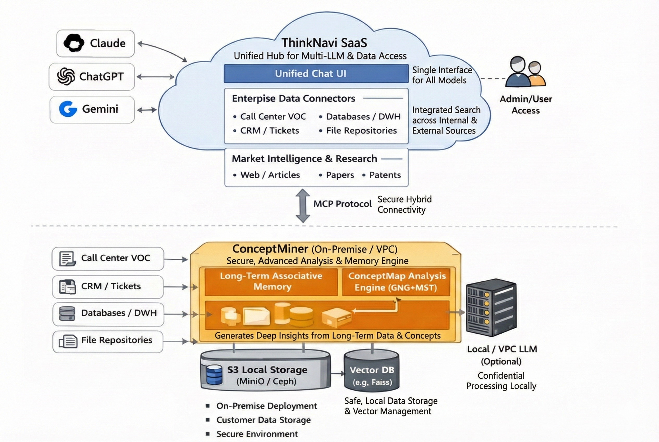 A system that helps define strategies and concepts through chat with AI. Regardless of the specific LLM model, ConceptMiner’s conceptual structure modeling capabilities allow it to form long-term associative memories and support strategic thinking that is aligned with the user’s interests and context.